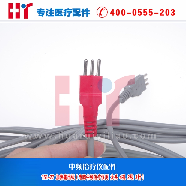 151-27 加热输出线(电脑中频治疗仪用 大头 4孔 2线 3针)