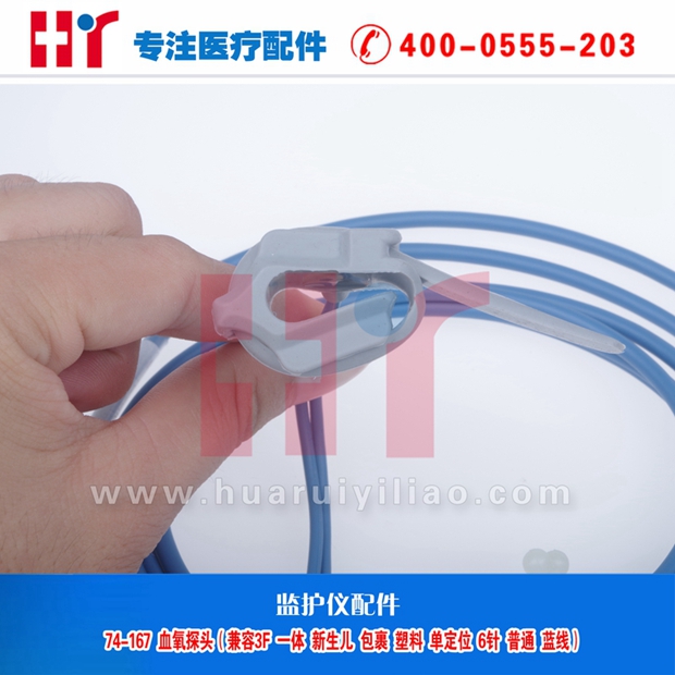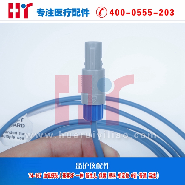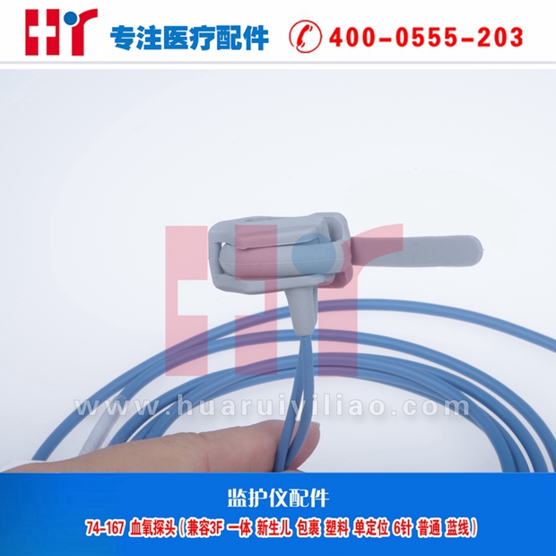 74-167 血氧探头(兼容3F 一体 包裹 塑料单定位 6针 普通 蓝线)