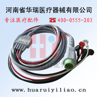 HR87-5 迈瑞心电导联线 (原装迈瑞PM6000一体五导联线 圆头12针 高品质 彩线)