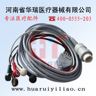 HR87-8 迈瑞心电导联线 (原装 迈瑞PM6000 一体五导联线 圆头12针 带电阻 高品质)