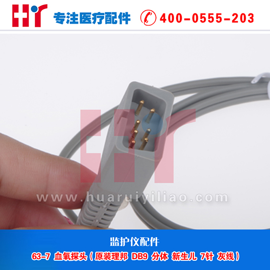 63-7 血氧探头(原装理邦 DB9 分体 新生儿 7针 灰线)