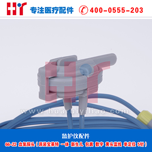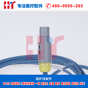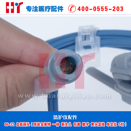 66-22 血氧探头(原装宝莱特 一体 新生儿 包裹 数字 黄头蓝线 单定位 5针)
