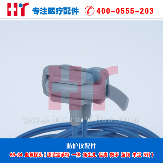 66-34 血氧探头(原装宝莱特 一体 新生儿 包裹 数字 蓝线 单定 5针)