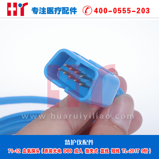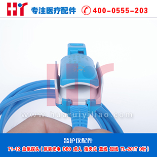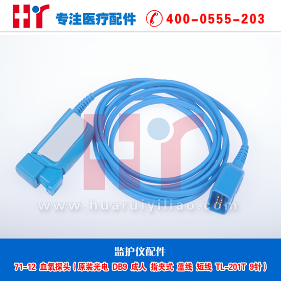 71-12 血氧探头(原装光电 DB9 成人 指夹式 蓝线 短线 TL-201T 9针)