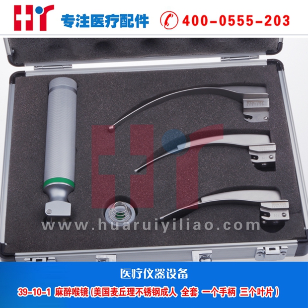 39-10-2 麻醉喉镜 (美国麦丘理 不锈钢 成人 灯泡型 全套 )