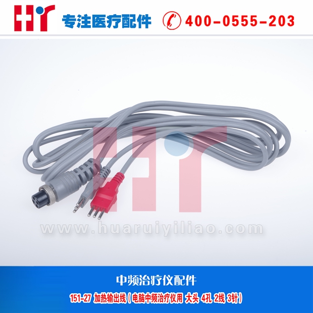 151-27 加热输出线(电脑中频治疗仪用 大头 4孔 2线 3针)